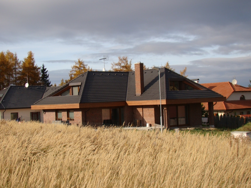 Jedná o novostavbu rodinného domu se zděnou nosnou konstrukcí, zateplením a celkovou fasádní obezdívkou z lícových ručních cihel. Složitá konstrukce krovu kombinující ocelové nosné prvky a dřevěnou vazbu tvoří rozsáhlé obytné podkroví. Součástí dodávky bylo založení na základových pasech, kompletní infrastruktura včetně vrtané studny a retenční nádrže dešťových vod.